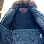 внизу утяжка, капюшон с мехом, мех отстегивается, капюшон тоже