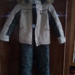 Детский зимний комбинезон в хорошем состоянии,размер 26,рост 110,бежево-зеленого цвета,с капюшоном и подкладкой