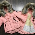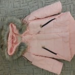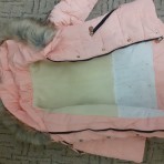 Рост 122,рукав 45 см.,впереди 50 см.,сзади 60 см.Наполнитель синтепон 300,цвет пудра.