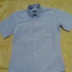 Светло - голубого цвета, в хорошем состоянии. Длина по спинке от горловины 57 см; ширина 35 см; рукава короткие.