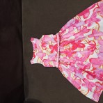 Платье сине-пудровое 300. Розовое с цветами 120. Чёрное с цветами 50. Синее с цветами, белое с леопардовыми пятнами, 150. Чёрное платье-туника, сарафан в горошек 80. Юбка розова в белый горошек 25. Юб...