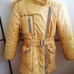 Зимняя тёплая курточка на девочку. Очень комфортная и удобная. С капюшоном, капюшон отстёгивается и мех на нём. Курточка под поясок-резинку, зимой будет тепло! Рукав 50см,спинка 66 см, п/о груди 42 см