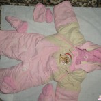 на синтипоне с капюшоном, рукавичками и утепленными тапочками. Размер 80. Длина рукава - 39 см, длина общая (без капюшона) - 72 см