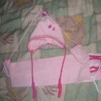 Комплект шапочка+шарфик+варежки, материал - двойной флис, размер 42/44, но большемерит!! Очень классный!!!