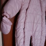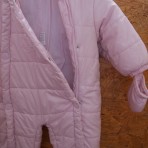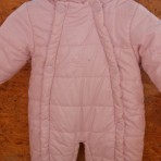 Комбинезон приятного нежно-розового цвета с отблеском. размер 12-18 написан., мы носили с 6 до12 м. В хорошем состоянии, очень удобный, на осень-весну.