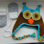 Вязанная шапочка"Совёнок"+рукавички