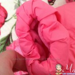 Ручки и ножки при желании закрываются специальными отворотами. Комбинезон украшен веселой аппликацией и снабжен светоотражателями. На капюшоне – нарядный белый мех.