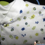 Трикотажный человечек белый с морским рисунком, унисекс, на кнопках или пуговицах спереди, между ножек строчка.