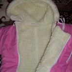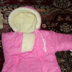 Очень теплый комбезик для малышки на рост 74 см. Утепленный овчинкой,капюшон затягивается по размеру головы.Ручки можно сделать как открытыми, так и закрытыми.Комбинезон удобно расстегивается с двух с...