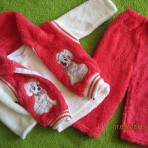 костюм-тройка собачка, травка, коралловый, штанишки, кофта и жилетка, Турция,