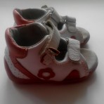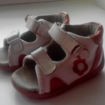 Сандали кожаные,размер 18,ортопедические,почти в новом состоянии,быстро из них выросла нога, в основном ездили в них в коляске,две липучки хорошо держат ногу,так что очень удобно в них начинать ходить...