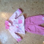 Костюмчик осенний для девочки 6-9 месяцев. (Даже до года штаны отворачиваются). В идеальным состоянии. Внутри байковый, мягенький. Плотный (мы носили в середине осени).