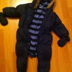 Синий стеганый комбинезон осень/весна фирмы Next на 9-12 м, в идеальном состоянии, флисовая подкладка, на синтепоне, кнопочки растягиваются от горла к самым пяточкам, для удобства одевания малыша.