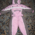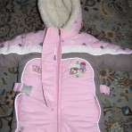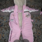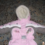 Симпатичный серо-розовый зимний комбинезон на девочку. Теплый, на овчине. Рост 80см.
