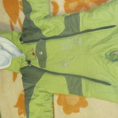 комбинезон зеленого цвета теплый на меху с ножками и ручками для малыша 1-1.5