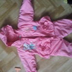 Демисезонный костюм для девочки,в реале ярче чем на фотографии,состояние удовлетворительное,есть немного катышек,но их легко убрать даже с помощью обычного станка. Размер 12-18 мес.