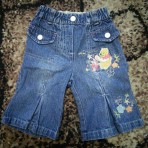 Джинсовые легкие бриджи на девочку 1-2 года. Длина от пояса 28 см, ширина по бедрам 28 см.