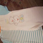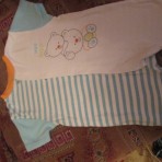 Очень удобный летний песочник, качество х/б, вид сзади такой как слева белый в голубую полоску. Размер 80.