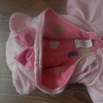 продам фирменный осенний комбинезон на 6-12 мес. цвет светло розовый, на змейке до конца ножки, зверзу на кнопочке. фирма Disnep store. есть капишен, на нем размещен бантик с двома красивыми ушками. с...