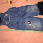 новый теплый на махре джинсовый комбезик. По бирке 12м. но маломерит, смотрите фото с замерами!)))