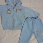Костюм на возраст примерно от 8мес,но кофточка дольше. Мы носили только кофту,поэтому она немного светлее штанов и есть небольшие пятна на локтях-35грн. Комбинезон в отличном состоянии,носили мало-50г...