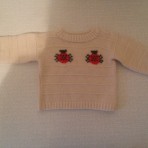 Красивый вязанный свитерок бежевого цвета с божьими коровками!Длина от плечика 22,5 см