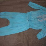 спортивный костюмчик велюровый бирюзового цвета с аппликацией львёнка на кофте и штанами с заниженным шаговым швом.