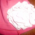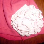 Шапочка малинового цвета с большим розовым цветком. Возраст примерно 2 года