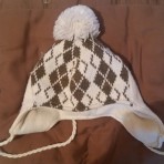 Шапочка в хорошем состоянии,на флисе.Расчитана на холодную осень и теплую зиму.Размер 44.Ориентировочно до 1.5 годика
