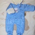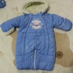 Теплющий комбез на овчине, делается мешком, что очень удобно для новорожденных. Из нюансов: отломан кончик замочка на собачке, нет одной кнопки на сапожке. размер универсальный, от рождения до года
