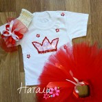 Продаю комплект на годик-полтора. В комплект входит пышнючая юбка-пачка из фатина, футболочка х/б, расшитая вручную пайетками. Можно так же отдельно приобрести повязочку с пышным бантом.