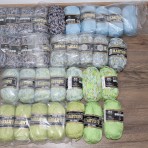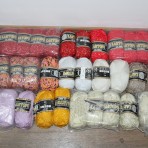 распродаю нитки для вязания,кол-во и цвета только те что на фото."Kartopu Ak-simli" нитка с люриксом 100гр.250м.92%акрил,8%люрикс(мягкая,не колится) цена 40гр моток, "Аляска" 100гр.55м.30% шерсть,70% ...