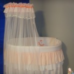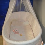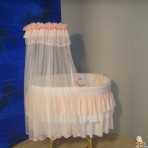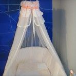 В комплект белья для колыбели входит: балдахин, бортик, одеяло,матрасик, простынка.