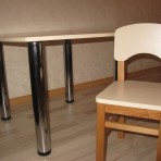 Столик и стульчик на металических, регулируемых ножках. Ножки снимаются. Высота стола 50 см, ширина-70. Цвет-бежевый. Состояние идеальное