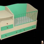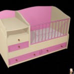 Благодаря своей конструкции раскладывается с кровати манежа в подростковую кровать, прикроватную тумбочку и письменный стол.