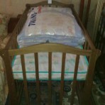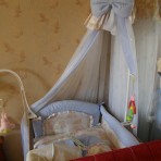 детская кроватка ,цвет орех ,3-положения высоты,+матрас наполнитель кокос+защита+балдахин.Нормальное состояние.