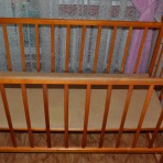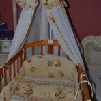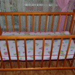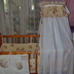 Продаю деревянную кроватку с матрасиком из кокосового волокна (чехол сьемный), с комплектом защиты, одеяльце с пододеяльником, карман, балдахин с держателем.