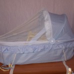 в комплект уже входит: ортопедический матрас, подвесная люлька с москитной сеткой, балдахин, держатель для балдахина,мягкий защитный бортик;