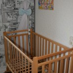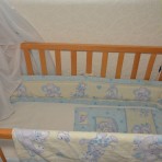 Детская кроватка "Веселка" украинского производства,светлое дерево,в комплекте:матрас добротный кокосовый,стойка с балдахином,защита,постельное белье,новый музыкальный горшок в подарок.