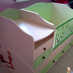 Чудесная кроватка с комодом. Подходит для детишек от младенца до 3-4 лет. Закруглённые углы делают кроватку более безопасной для малыша. Комод на 2 ящика, плюс 2 ящика под кроватью делают кроватку про...