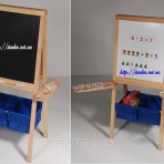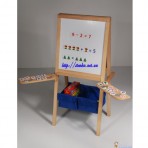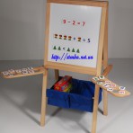 Двусторонний магнитный мольберт "МЕТЕЛИК" . За таким мольбертом легко размещаются сразу два малыша. Одна сторона чёрная для рисования мелом, другая металлическая (белая) для прикрепления листка бумаги магнитами, идущими в комплекте, чтобы рисовать красками или карандашами (фломастерами, маркерами и т.п.), а также для размещения магнитных букв и цифр. Мольберт оснащён удобными карманами для хранения разнообразных мелочей. Боковые "крылышки" имеют отверстия, куда помешается пластиковый стаканчик для хранения кисточек и карандашей.