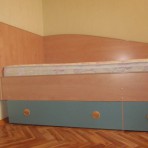 В комплекте: кровать полуторная, шкаф для вещей, стол письменный и он же компьютерный, полки для книг навесные, шкаф книжный, комод, тумбочка. Под кроватью выдвижные ящики. Мебель в отличном состоянии, цвет - бежево-бирюзовый. С матрасом ортопедическим Велам. Разумный торг. моб .тел. 095 169-0786, 067-512-27-96