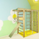 П-образный спортивный комплекс представляет собой снаряд, который совмещает в себе несколько основных компонентов: шведскую стенку, гладиаторскую сетку для лазанья и рукоход.