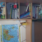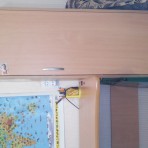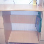 стол светлого цвета, есть подставка для ног, крючок для портфеля, выемка, как на компьютерных столах, использовался пару месяцев