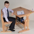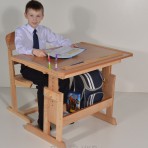Снизу есть удобная полка для хранения книг, портфелей и т.д., а также полка под столешницей для альбомов, ручек, карандашей и т.п. Столешница может быть расположена горизонтально - как стол, и под углом - как парта. Изменить угол наклона столешницы может и ваш ребёнок самостоятельно.