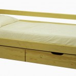 Часто предлагаются недорогие кровати с мебельного щита – маленькие фрагменты древесины склеенные между собой – обычно бук, изделие прочное, но не имеет однородной фактуры, аналогично шубе сшитой из кусочков меха. Сколько бы высококачественных заменителей сегодня ни изобретали, лучше всего с этими задачами справляются натуральные материалы. Н атуральная древесина надежна и дарит ощущение комфорта, аромат дерева выступает как естественная ароматерапия, успокаивает и убаюкивает. Лаки и краски на водной основе не имеют неприятного запаха, не тускнеют со временем, не вызывают аллергических реакций.