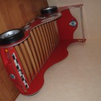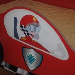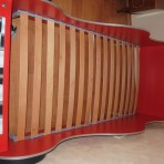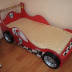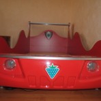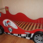 МДФ целое ( без трещин, сколов ). Кровать очень крепкая изначально ( нами не расшатанная), спокойно выдерживает взрослого крепкого человека. Особенно удобно для маленьких -не упадут с кровати и плюс им интересно.