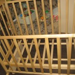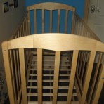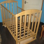 Кроватка SKV 114005 с маятниковым механизмом для укачивания. Очень удобная (укачивала ребенка одним пальцем, не вставая с постели). Размеры кроватки (см): 125х68х100. Размеры спального места (см): 120х60. Есть механизм регулировки высоты боковины (боковина опускается нажатием двух кнопок). Боковые стенки, торцевые стенки и днище реечные. Кол-во уровней днища: 2. Качающий механизм: маятниковый, поперечного качания. Кроватка изготовлена из массива березы. Цвет - натуральный. В комплектации есть стопоры, чтобы зафиксировать люльку (если вам не нужно укачивать ребенка).Пользовались кроваткой примерно год. Ничего не сломано. Всё работает. Потертостей нет.