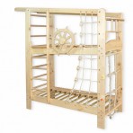 Тщательно продуманная конструкция сочетает в себе безопасное место для сна, рассчитанное на двух детей, и полноценный спортивный уголок, занимает минимум площади. Кровать - спорткомплекс изготовлен из экологически чистой древесины - сосны или бука.