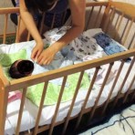 С одной стороны кроватки вынимаются 3 перегородки и получается проход через который удобно брать малыша к себе, или когда он станет постарше, может самостоятельно выбираться из кроватки.